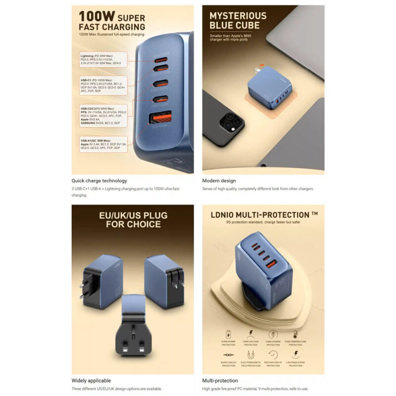 LDNIO Q8 GaN 100W Multi-Port Super Fast Charger